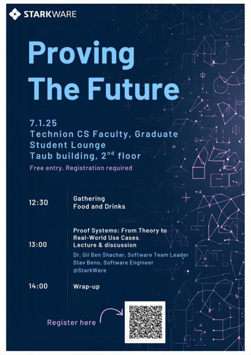 STARKWARE Lecture - The lecture will deal with the topic of Proof Systems and focus on bridging the gap between theory and real-world application (led by Dr. Gil Ben Shachar and Stav Beno).