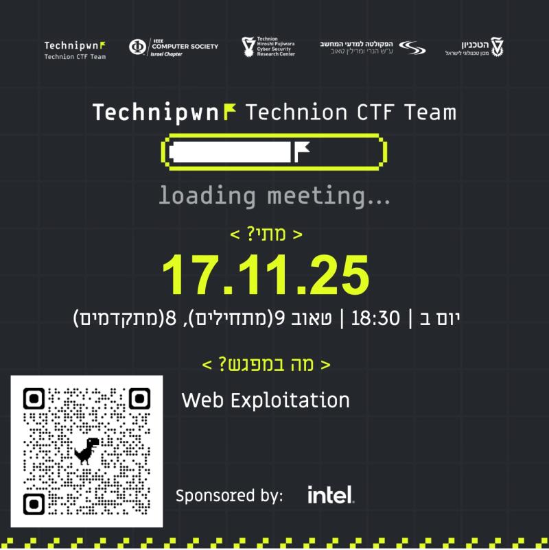 קבוצת הCTF הפקולטית Technipwn תקיים מפגשים דו שבועיים להתנסות בפתרון אתגרים, תחרויות וכיף.