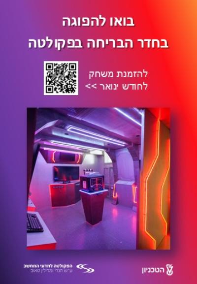 Game duration: about an hour | Invitation for students and alumni | You can enter the Technion with a car. Independent parking | Please do not register from today to tomorrow - we will not be able to prepare with guidance